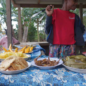 "Plant their own crops from the garden and they sell bananas, and taro in the market. And us women from Freshwater we went to the market buy baskets of products with from the villages and come and prepare for the 20 Vatu."
