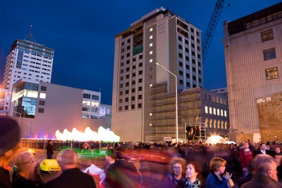 The opening night event for the inaugural Festival of Transitional Architecture (FESTA) in Christchurch.