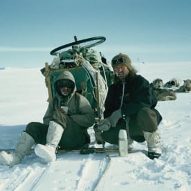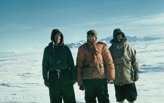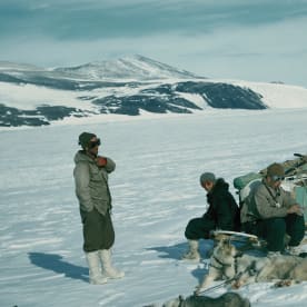 Skelton Glacier Recce 1957. L to R Richard Brooke Harry Ayres, Murray Douglas. Photo M Ellis