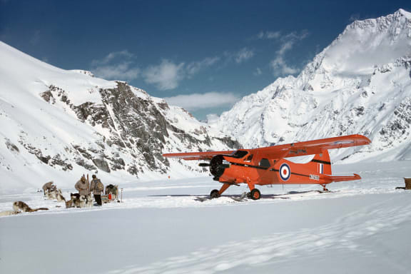 Mt Cook Training. Beaver aircraft and husky team upper Tasman Glacier. Photo M Ellis