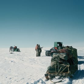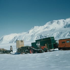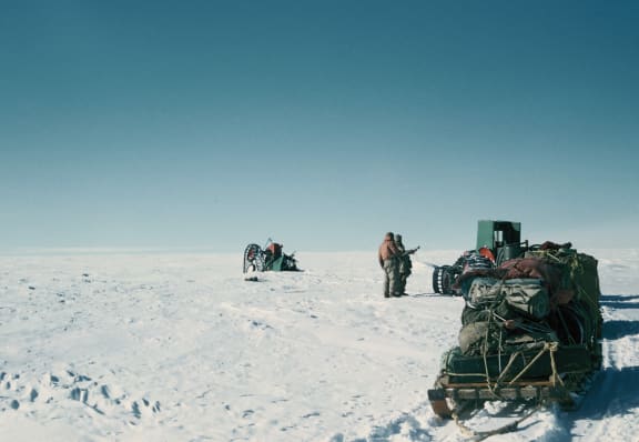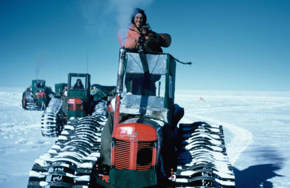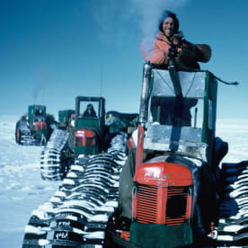 Ed and the tractor team leaving Depot 700 for the South Pole. Photo H Ayres