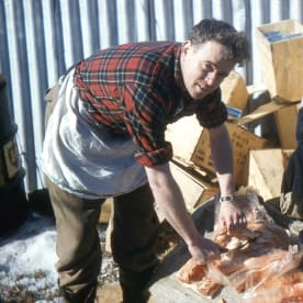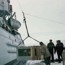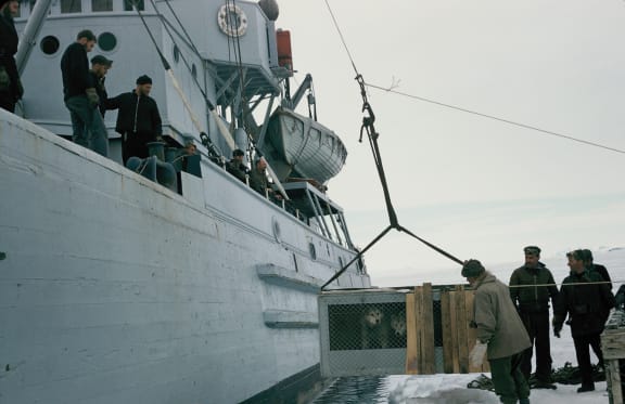 Unloading the huskies from Endeavour Butter Point. Photo M Ellis