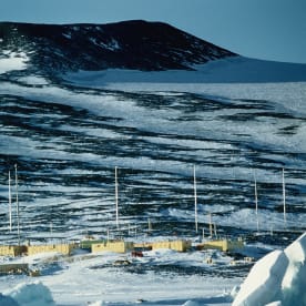 Scott Base from Ross Sea ice pressure ridges. Photo M Ellis