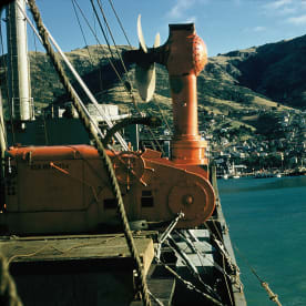 Greenville Victory carrying some of the wintering over team arriving at Lyttelton Feb 1958. Photo M Ellis