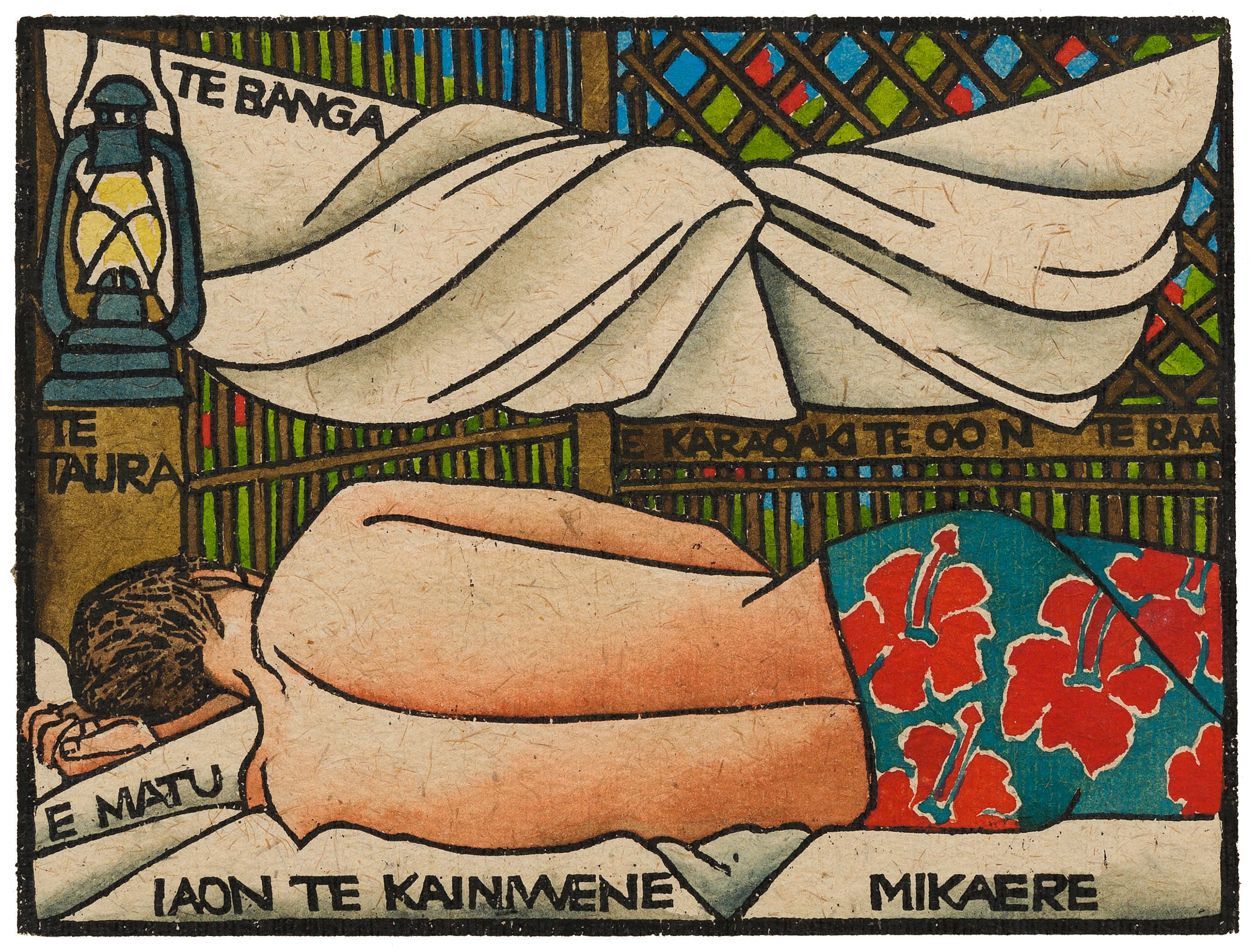 Robin White, Beginner’s Guide to Gilbertese: 1. Michael is sleeping on the bed (1983). (PHOTO: Robin White)