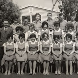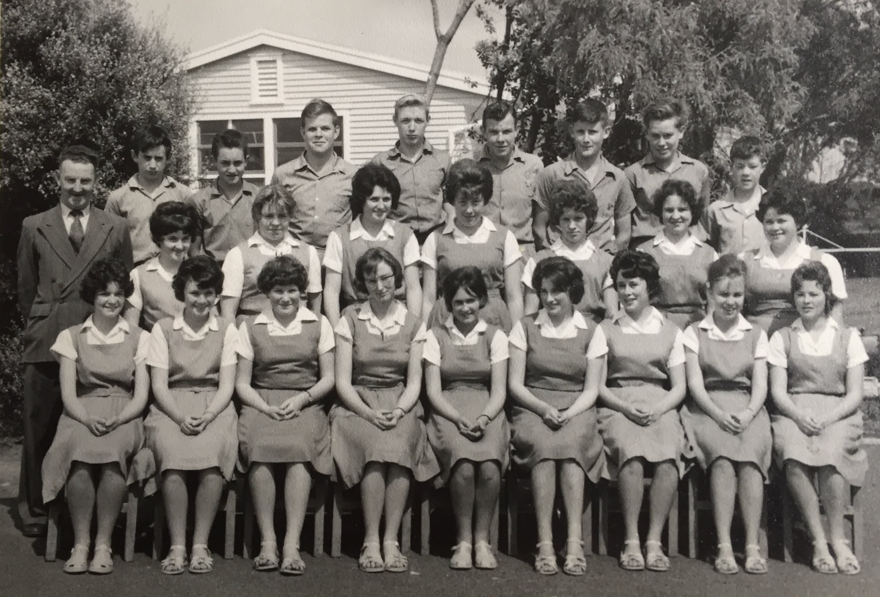 Robin (3rd from right, front row) at Raglan District High School in the 60s, her rock 'n' roll years (PHOTO: Supplied)