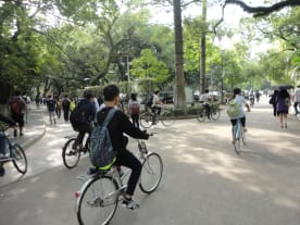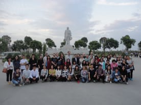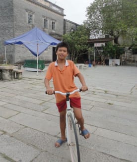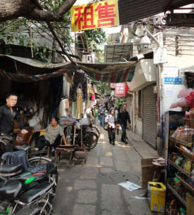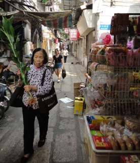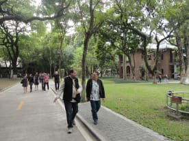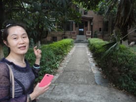 Professor Dai Fan pointing to the house she grew up in on campus.